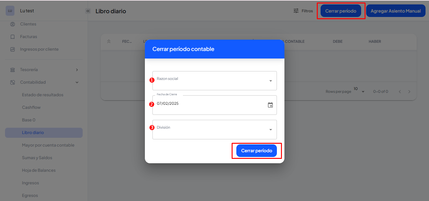 Paso 1: Hacer clic sobre el botón ‘'Cerrar Periodos''
