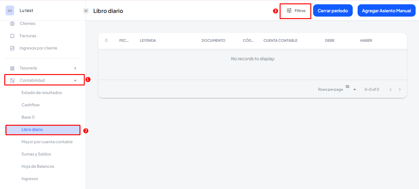 Adicionalmente podras realizar Cierres de Periodos y Agregar Asientos Manuales