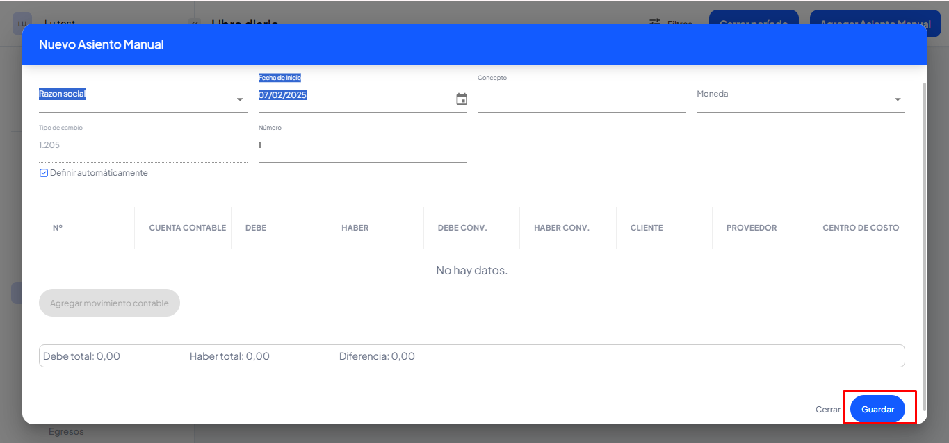Paso 3 Hacer clic en Guardar para Crear el asiento.