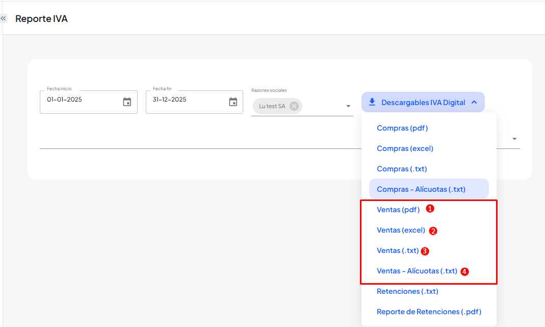 Reporte de IVA Venta en PDF y Excel, además de poder descargar el txt y alícuotas