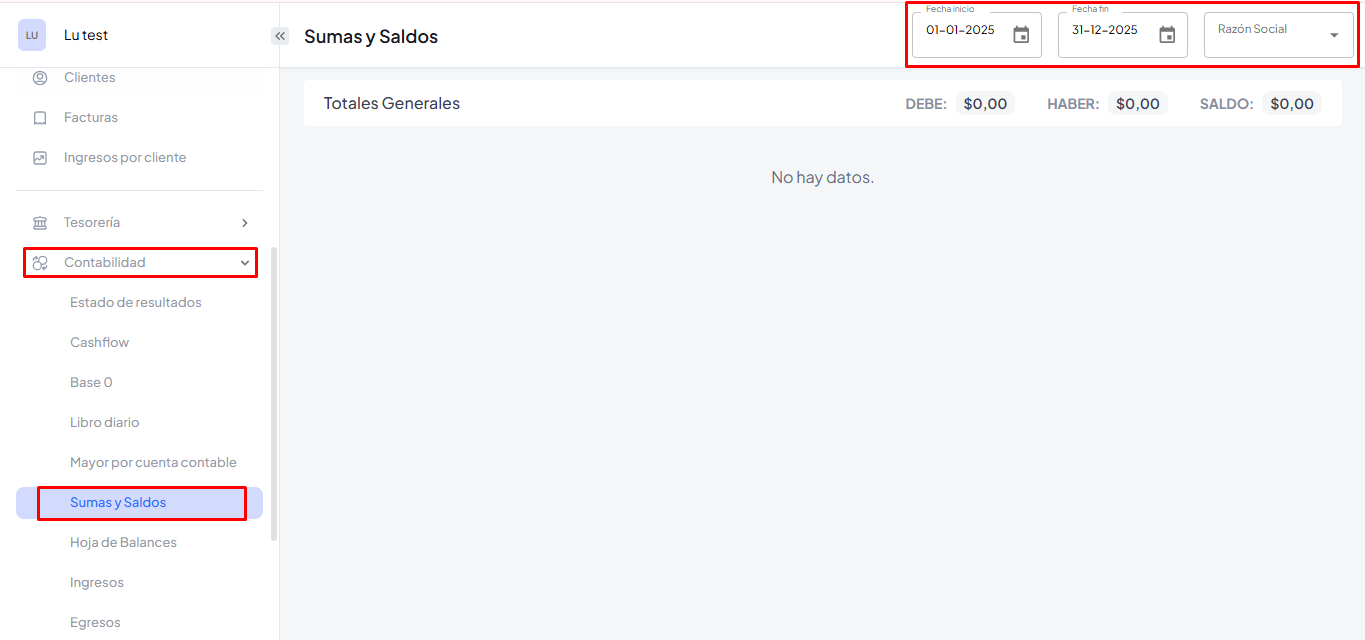 Paso 2: Selecciona la opción Sumas y Saldos