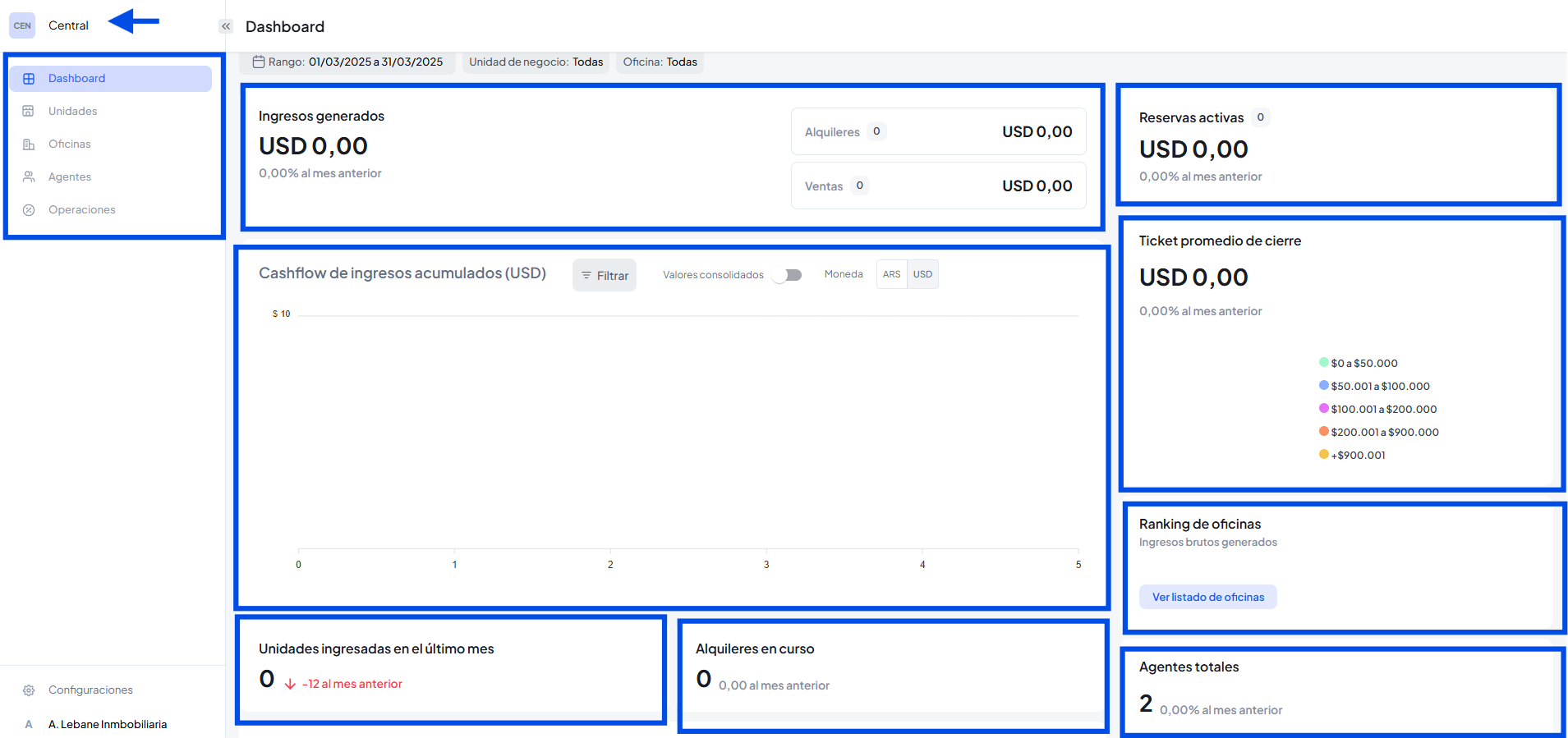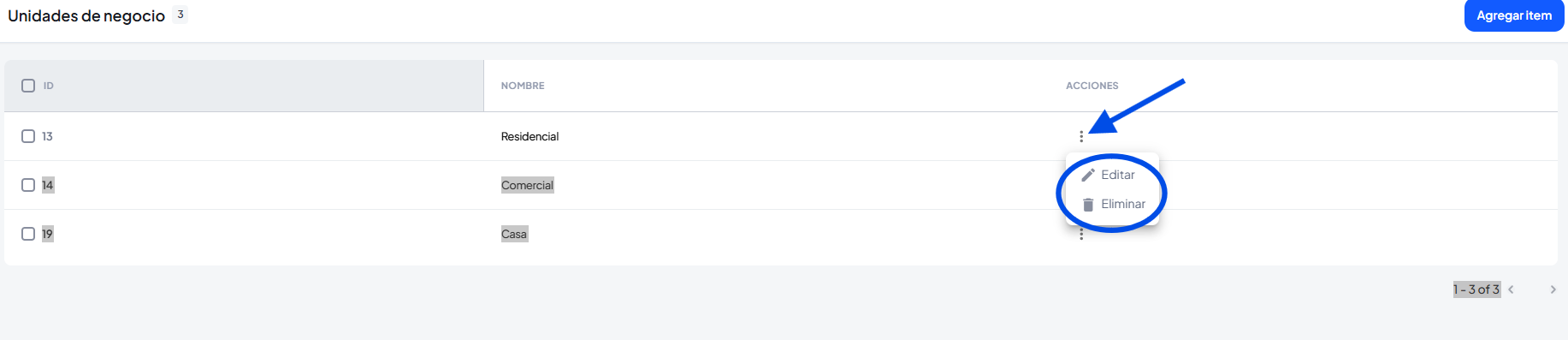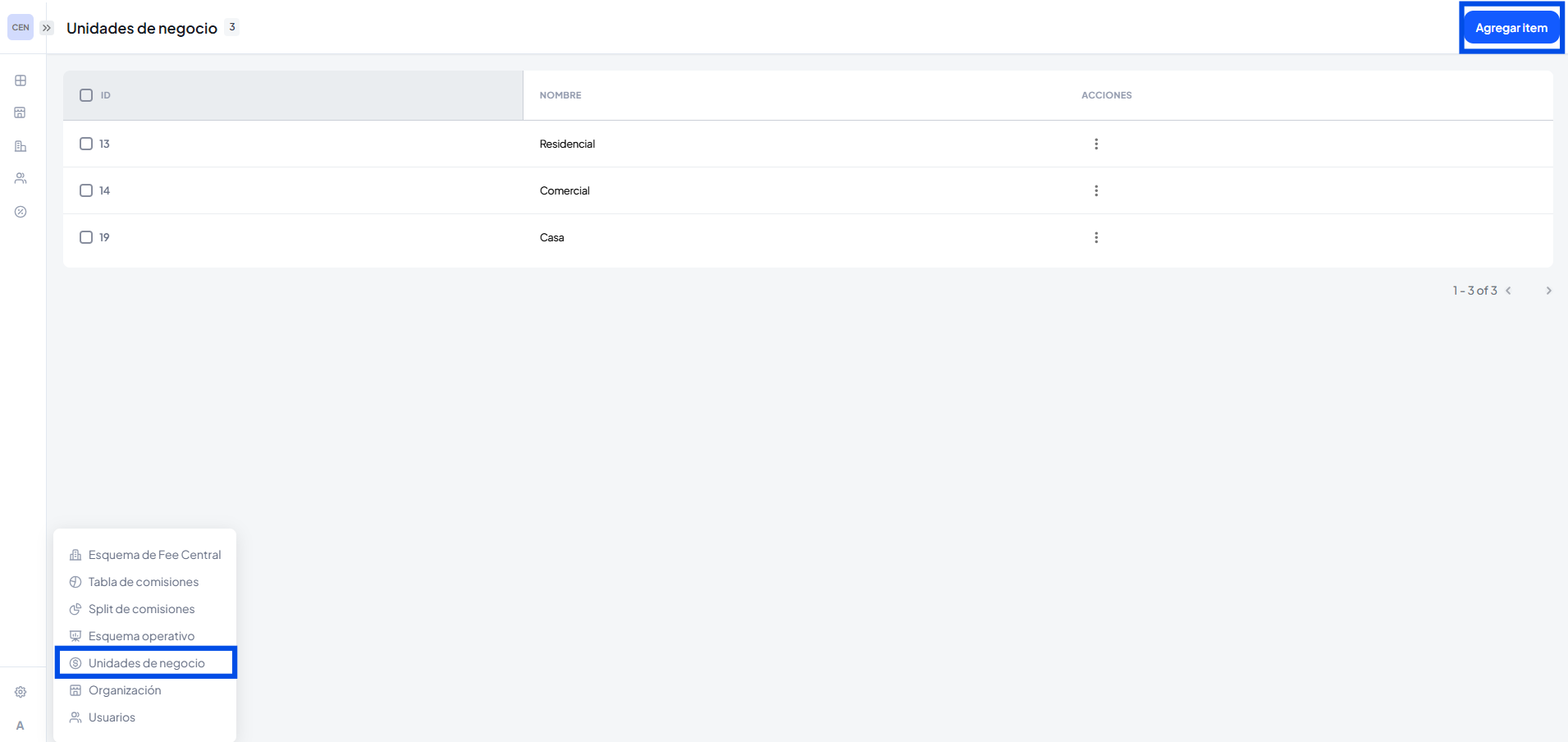 Acá podremos dar de alta las unidades de negocio que maneje nuestra inmobiliaria ejemplo: Alquiler, ventas residenciales, ventas de oficina, etc.