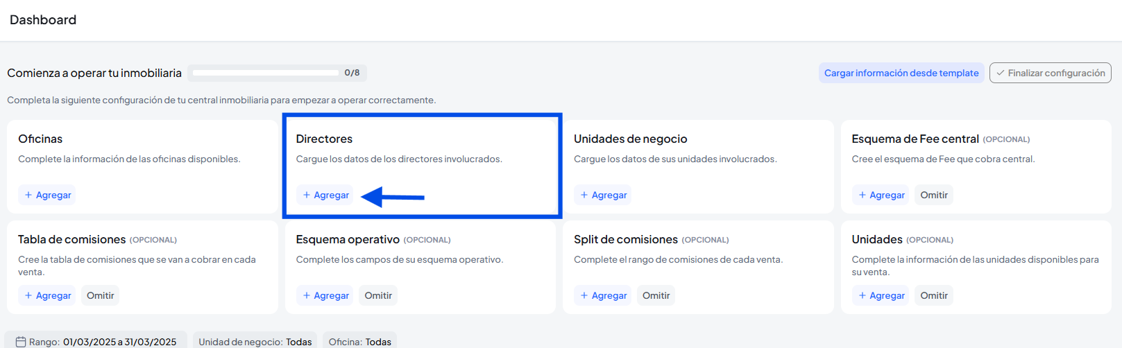 Podes crear tus directores desde la configuración inicial, haciendo clic en agregar