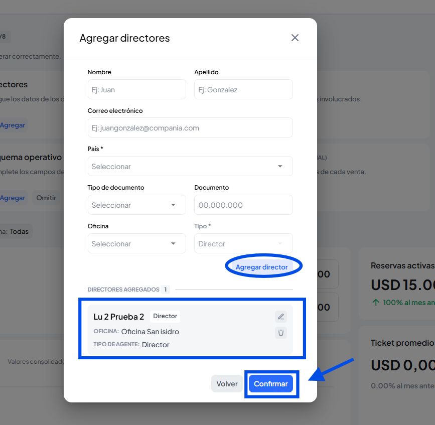 También podes agregar nuevos directores en la sección de oficina, haciendo clic en agregar