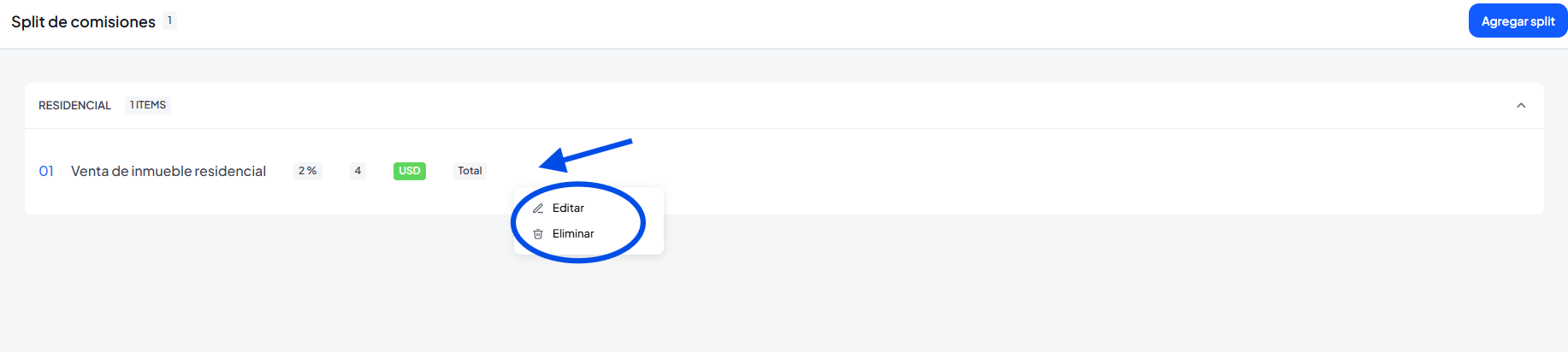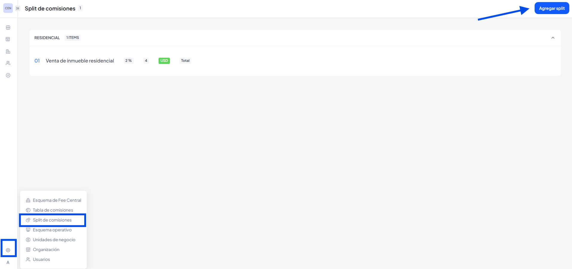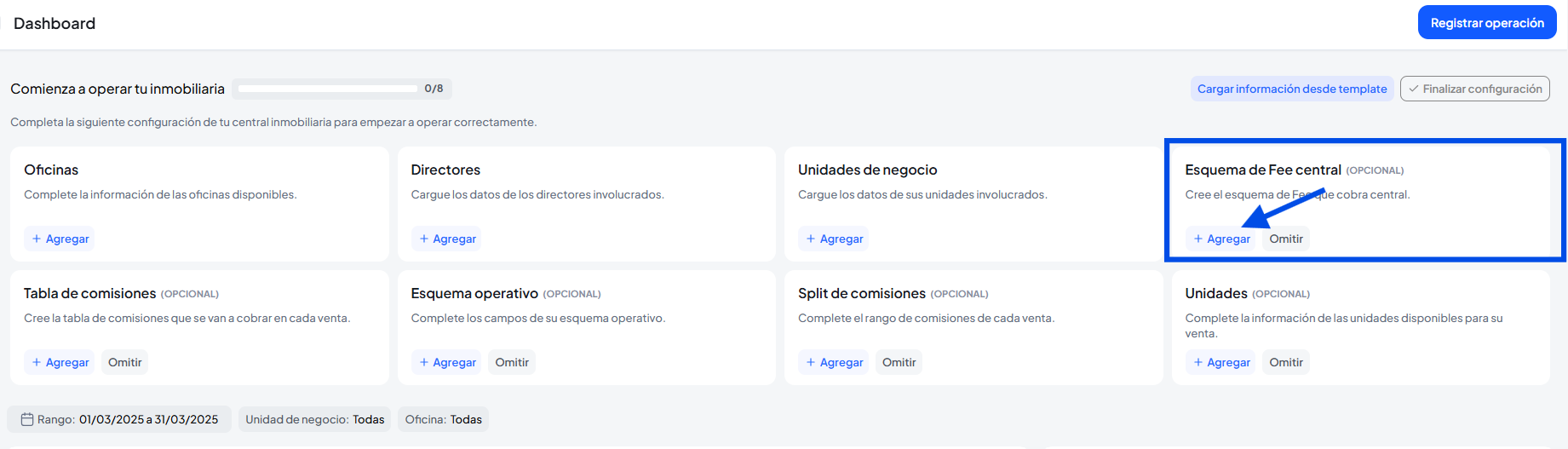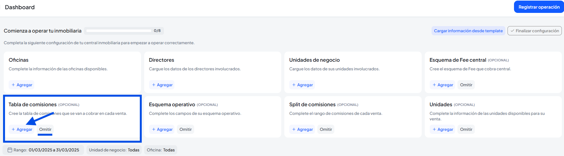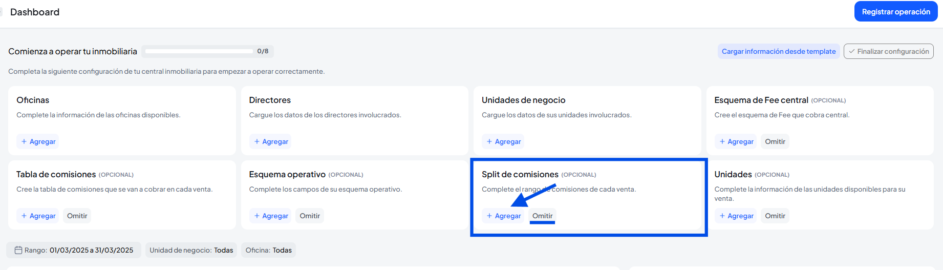 En esta opción podremos configurar si las comisiones de la operación va a dividirse en diferente oficinas y agentes.