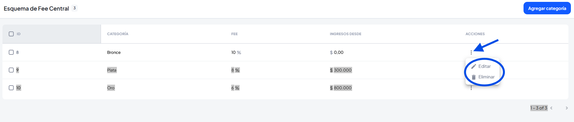 También desde la sección configuración podrás ver tus comisiones creadas, agregar una nueva