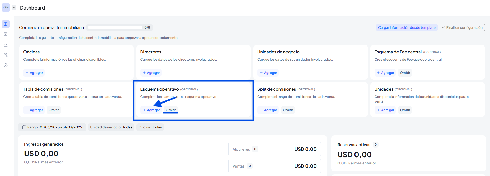 En esta pantalla vas a poder realizar las configuración generales además de ver las métricas de negocio .