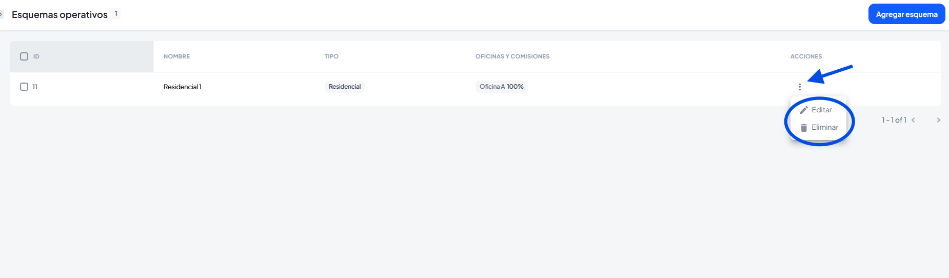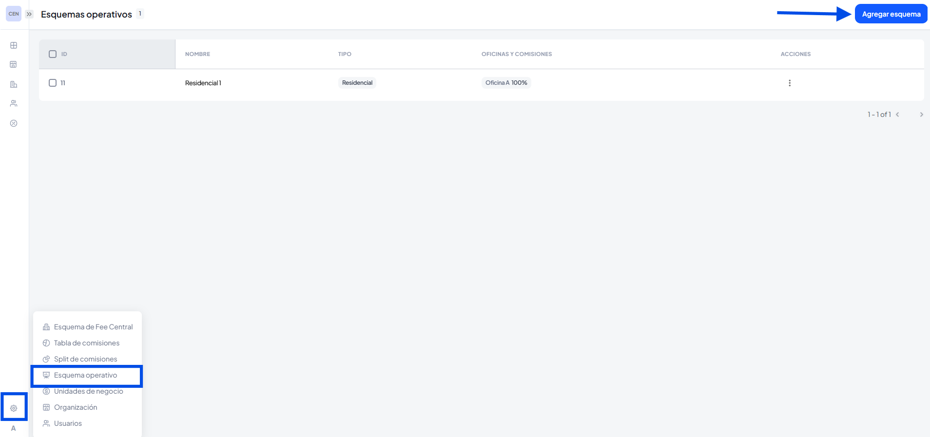 También desde la sección configuración podrás ver tus esquemas creados, agregar un nuevo