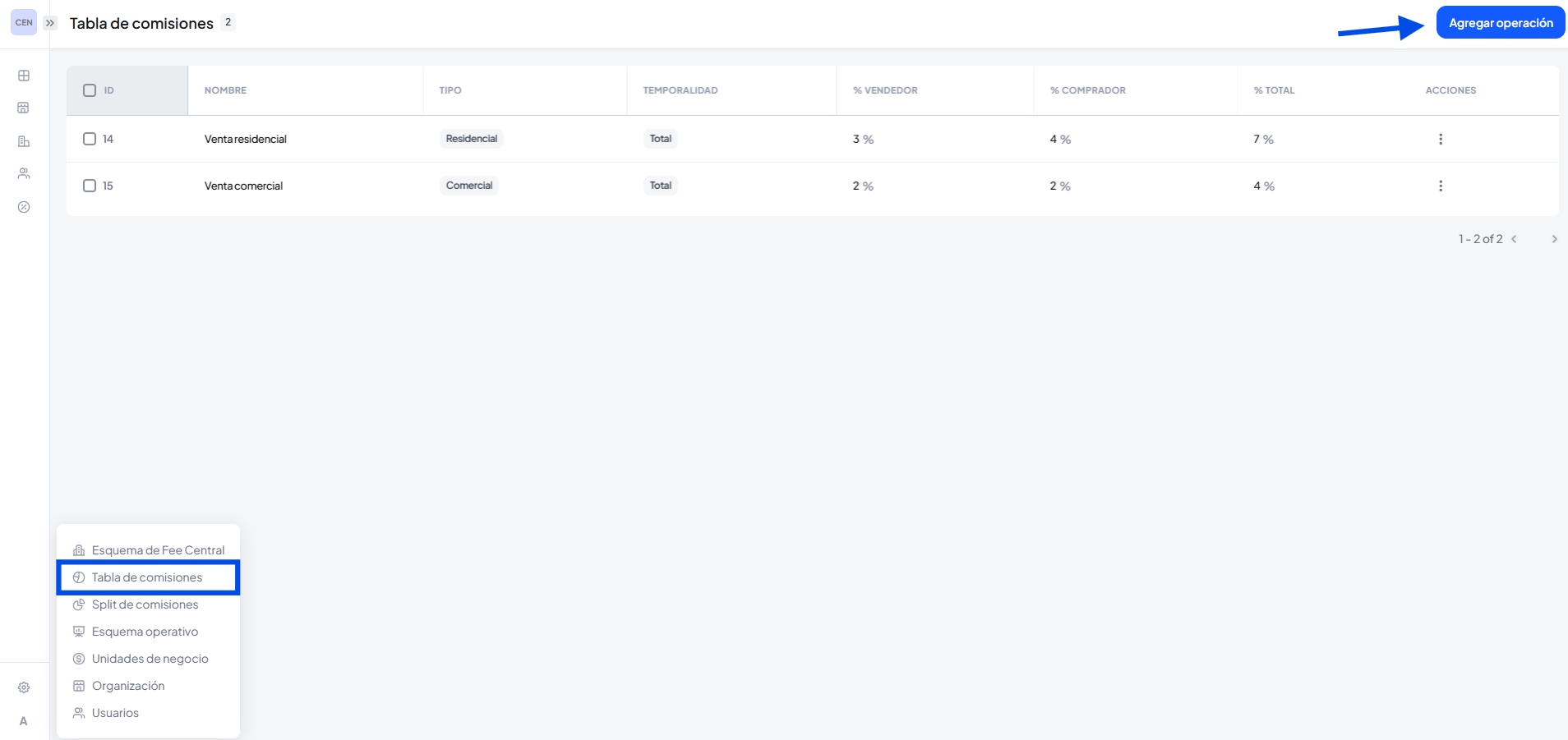 En ella podremos predeterminar al cierre de una operación la comisión que tendrá el vendedor como el comprador