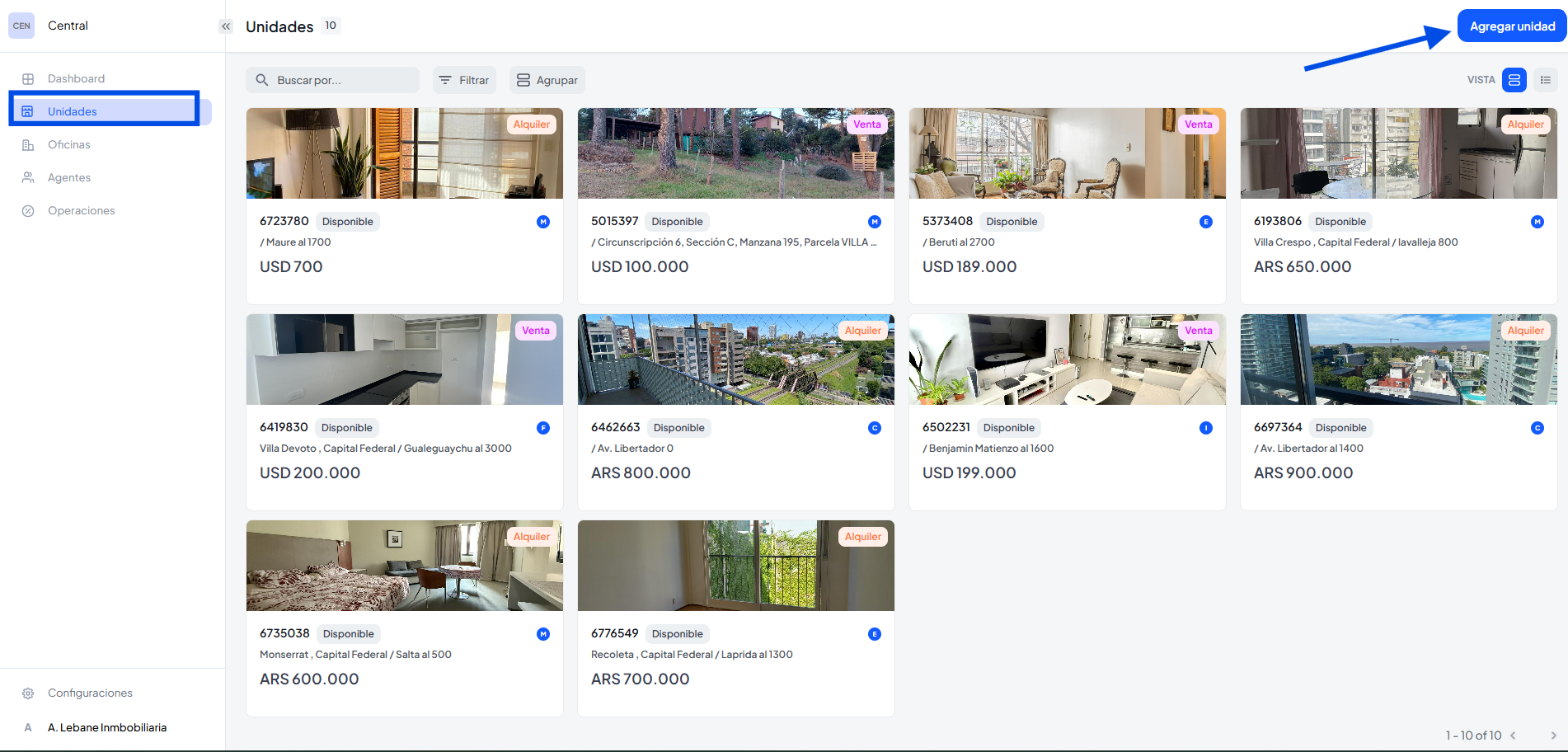 También desde la sección configuración podrás ver tus unidades creadas, agregar una nueva