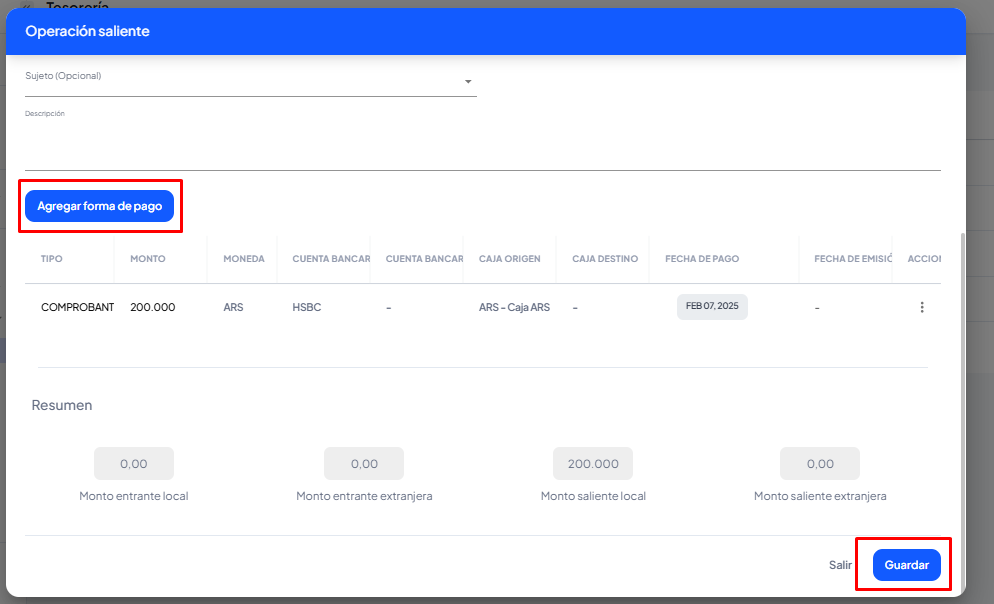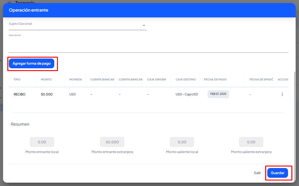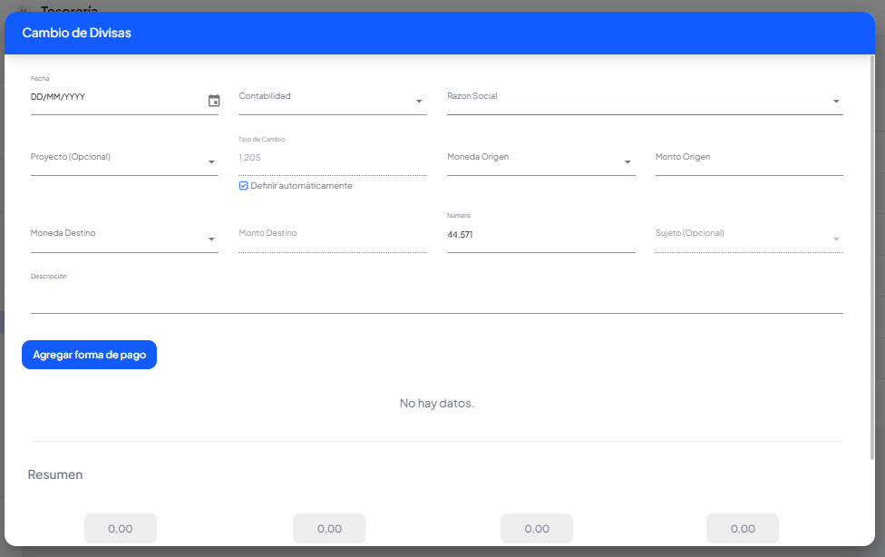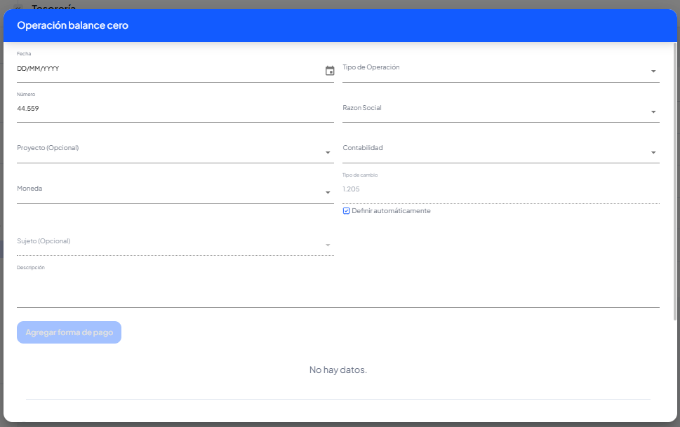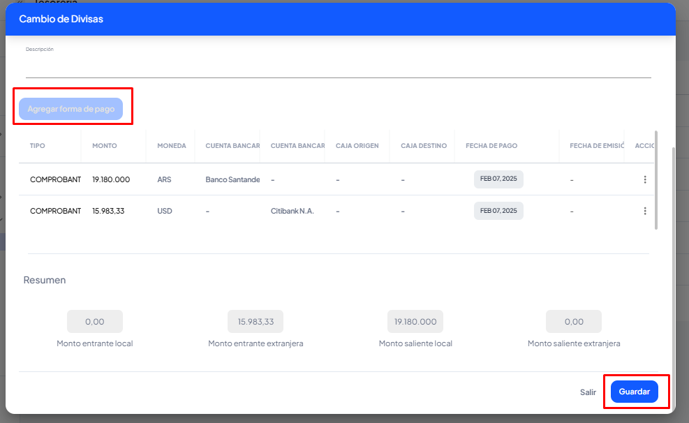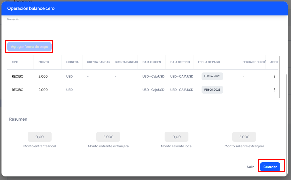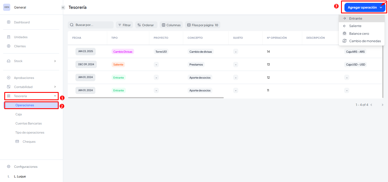 En esta sección vamos a poder realizar y visualizar las operaciones entrantes, salientes, balances cero, compra y venta de divisas.